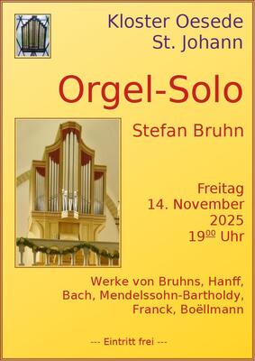 Am Freitag, 14.11.2025 um 19 Uhr ist Stefan Bruhn an der Orgel der Klosterkirche St. Johann zu Gast. Der Kantor und Organist der ev.-luth. Kirchengemeinden Gmhütte spielt großartige Orgelwerke des Barock und der Romantik (u.a. Bach, Mendelssohn, Frank). Dieses Konzert soll den Anfang setzen für weitere besondere Musik in der klangschönen Johanneskirche.