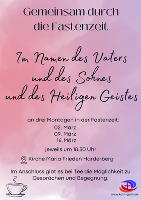 Termine: Montag 02. // 09. // 16. März 2026 jeweils um 18.30 Uhr in der Kirche Maria Frieden.
