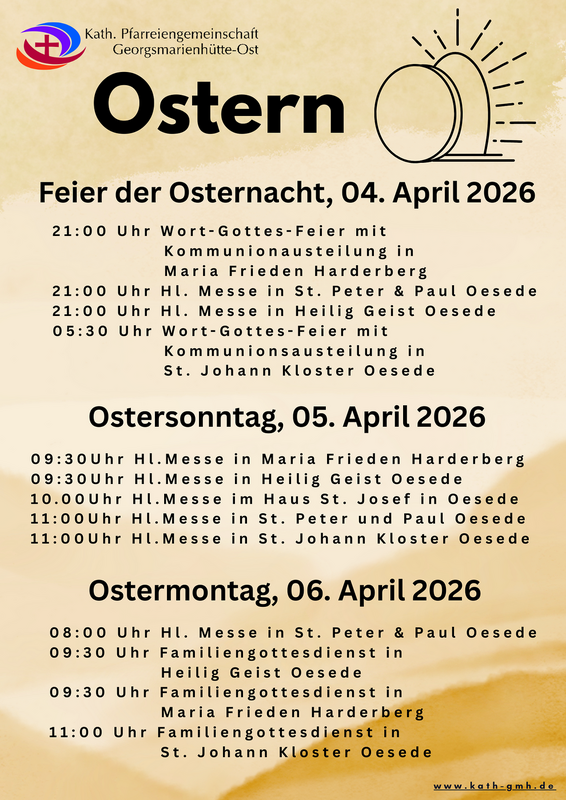 09.30 Uhr Familiengottesdienst in Heilig Geist Oesede - anschl. Ostereiersuchen um die Kirche
