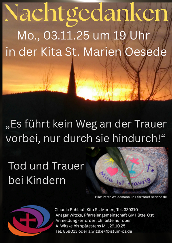 Nachtgedanken zum Thema Tod und Trauer bei Kindern - dazu lädt die Kita St. Marien Oesede am 03. November um 19 Uhr herzlich ein.