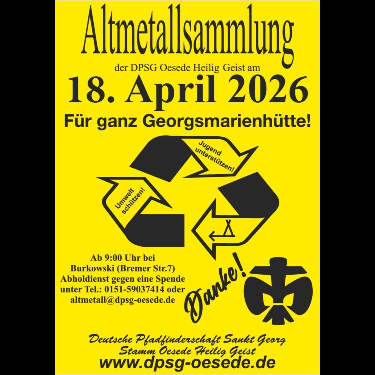 Die DPSG Oesede Heilig Geist sammelt am Samstag den 18.04.2026 ab 9 Uhr wieder Altmetall in ganz Georgsmarienh?tte.